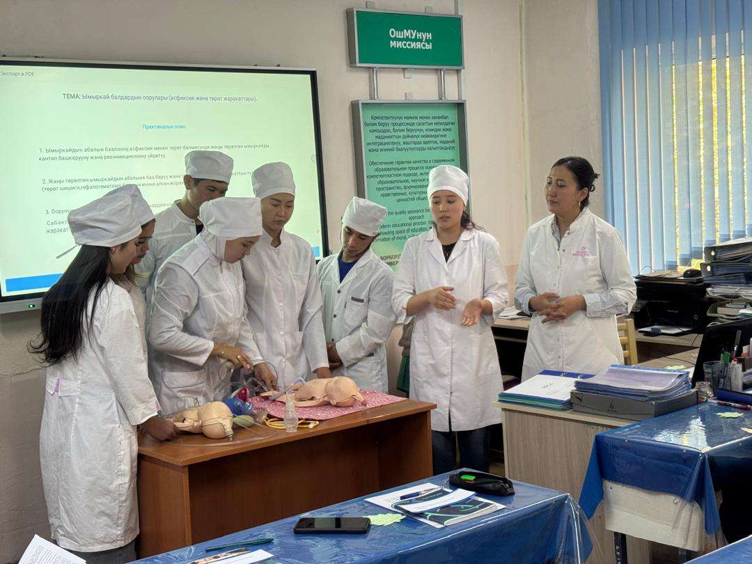 15.10.2025-жылы ОшМУнун медициналык колледжинин окуу методикалык кеңеши тарабынан студенттин өз алдынча ишин кабыл алууда дедлайн методду колдонуу менен “Өзгөчө кырдаалдарда дарыгерге чейинки алгачкы медициналык жардам көрсөтүү ыкмалары” аттуу темада мастер класс уюштурулду. Мастер класс бир канча адистиктин студенттеринин иштерин айкалыштыруу менен теориялык билимдерин практика жүзүндө демонстрациялоо, командада иштөө менен жүрдү.