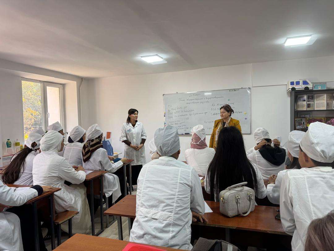 2024-жылдын 20-сентябрь күнү медициналык колледжде ОшМУнун ОСЖМК бөлүмүнүн жетекчиси М.М. Былыкова жана методистери